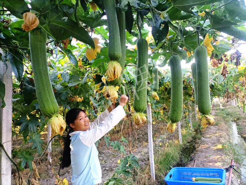 ▲ 8月上旬,菜農(nóng)在采收“優(yōu)比1號”絲瓜
