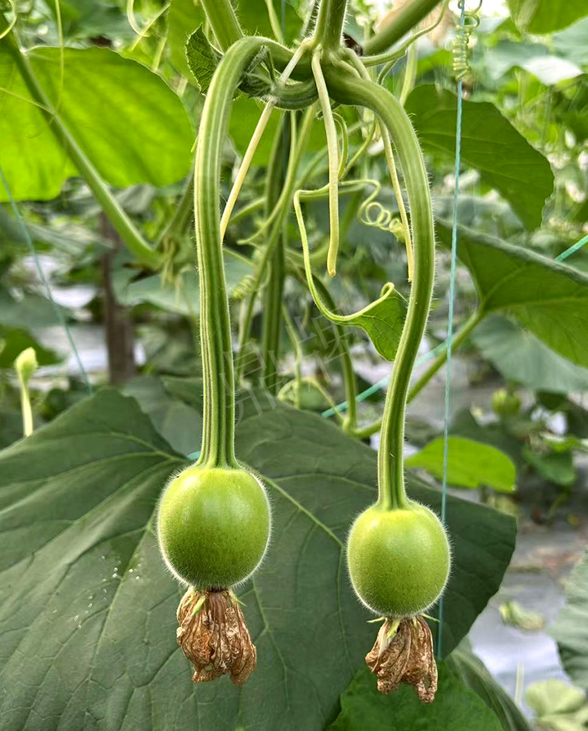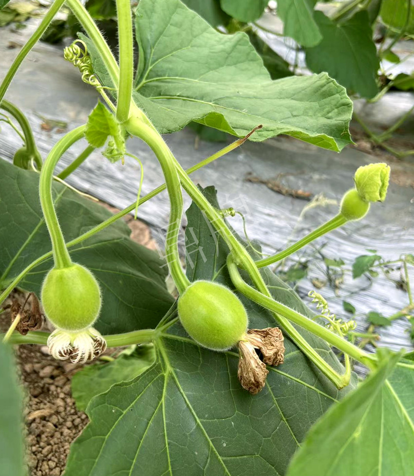 在瓠瓜的坐果期,王老板向筆者發(fā)了幾張“圓滿1號”瓠瓜的照片;這次問他“春棚如意”的照片,他說換了手機(jī),照片沒有了。下面就只能刊出幾張“圓滿1號”瓠瓜的照片了,以饗讀者!