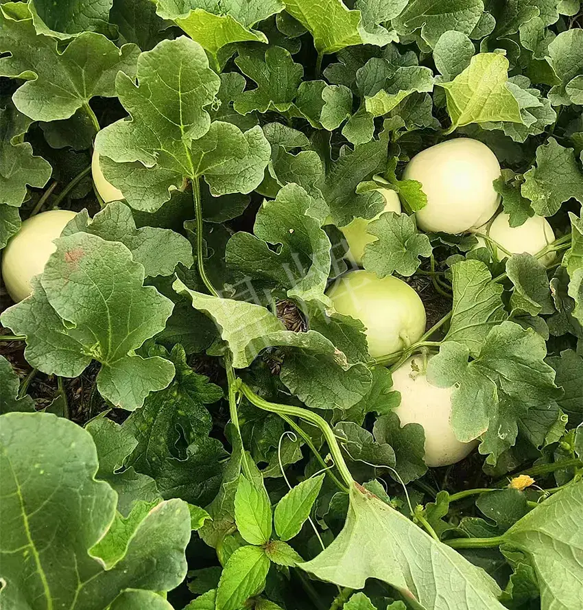 河南省焦作市溫縣的李老板把鼎牌“雪奶香2號(hào)”甜瓜種在草叢中,效果超級(jí)好,產(chǎn)量和品質(zhì)得到了進(jìn)一步的提高,加上當(dāng)?shù)叵矚g白皮甜瓜,所以,李老板的甜瓜收入可觀。