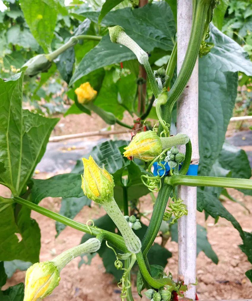 “大棚之愛”特早熟,生長勢中等,更主要的是藤蔓節(jié)長只有一般絲瓜的1/3,所以,在大棚種植不需要落蔓,也不需要采用“斷頭術(shù)”,所以叫“大棚之愛”;采用單蔓整枝,春播畝栽1200株左右、夏播畝栽1300株左右;不適宜雙蔓整枝。坐果期保持肥水充足、土壤濕潤。