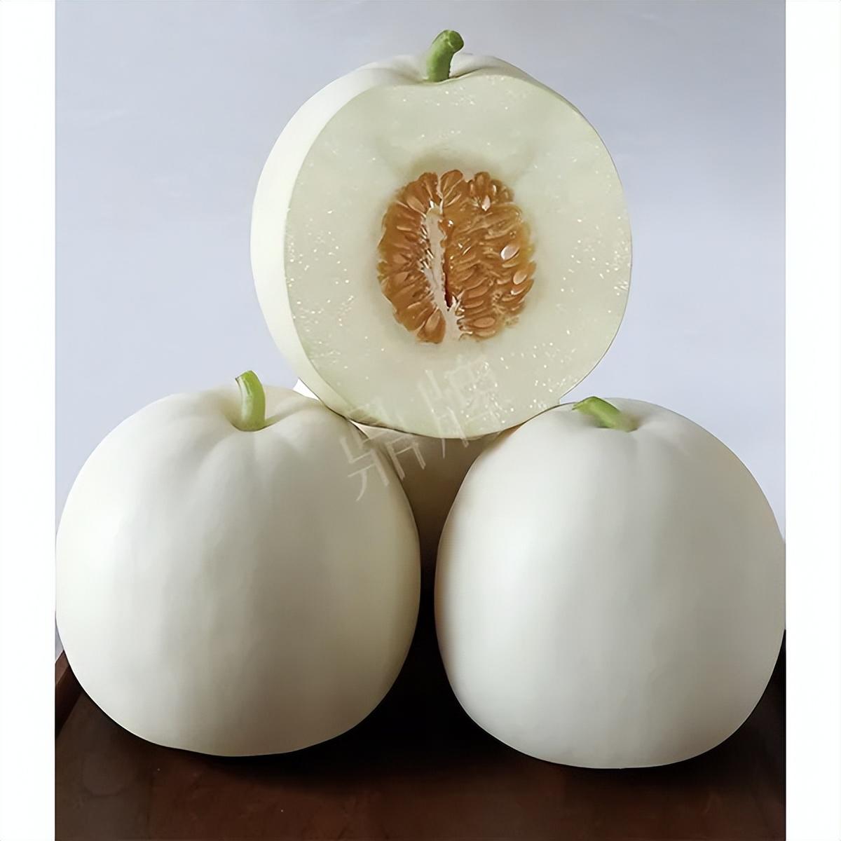 果實(shí)成熟后,果皮、果肉潤(rùn)白,有一種天然質(zhì)感,看到就讓人喜歡;果肉厚達(dá)3厘米,這是薄皮甜瓜中難以見到的品種;連皮吃時(shí)能聽到“咔嚓”之聲,脆爽無比;而果肉又是酥酥的,甜度高達(dá)19度,口感既脆又酥又甜;單果重650克左右,坐果早而多,耐低溫,抗高溫能力也突出,連續(xù)坐瓜率高,多雨天氣不易裂瓜;棚室、露地都易獲得豐產(chǎn)。