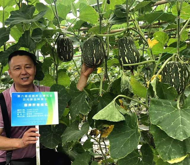 上面的圖片中,有一個(gè)新品種“胖墩”蜜本南瓜,是第一次與成都客戶見(jiàn)面。坐果之齊整,果形之端正,讓參觀的客戶留下了深刻印象;其品質(zhì)與“健美蜜本”南瓜一樣優(yōu)秀,生瓜都好吃!雖然胖、雖然墩,長(zhǎng)得胖胖墩墩,但瓜的空腔小,同樣沒(méi)有“大肚子”。遺憾的是,會(huì)議期間還沒(méi)有成熟,未能品嘗。該品種將于今年10月1日開始向全國(guó)推廣。
