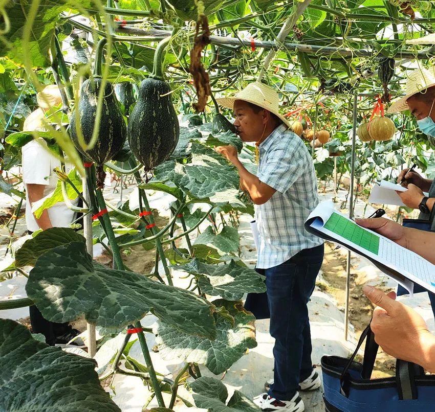 由于每個品類只能評選出1-2個品種,成為“專家推薦品種”,所以,初選后又進行一輪復(fù)評。復(fù)評時已臨近中午,棚內(nèi)溫度接近40℃,每位都是汗流浹背,特別是福建省農(nóng)業(yè)科學(xué)院研究員李大忠個子又高,老是頭撞棚架,但還是彎著腰認(rèn)真觀察每一個品種,認(rèn)真做好每一個品種的記錄;湖南省農(nóng)科院蔬菜研究所研究員胡新軍為了確定一個南瓜推薦品種,在大棚內(nèi)反復(fù)來回,比較又比較,真是認(rèn)真又細(xì)心。他們這種負(fù)責(zé)的工作精神,讓筆者感動!