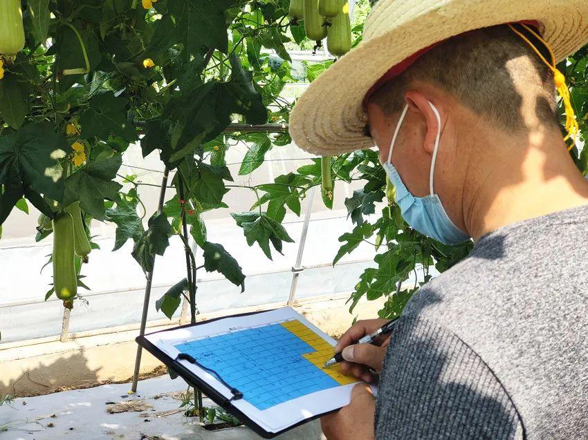 3位專家有條不紊,先后對苦瓜、絲瓜、南瓜進行了初評。在評選中,經(jīng)常展開討論,各抒己見。在遇到表現(xiàn)好的品種時,還忍不住拍照和記錄。