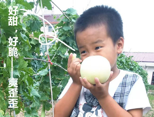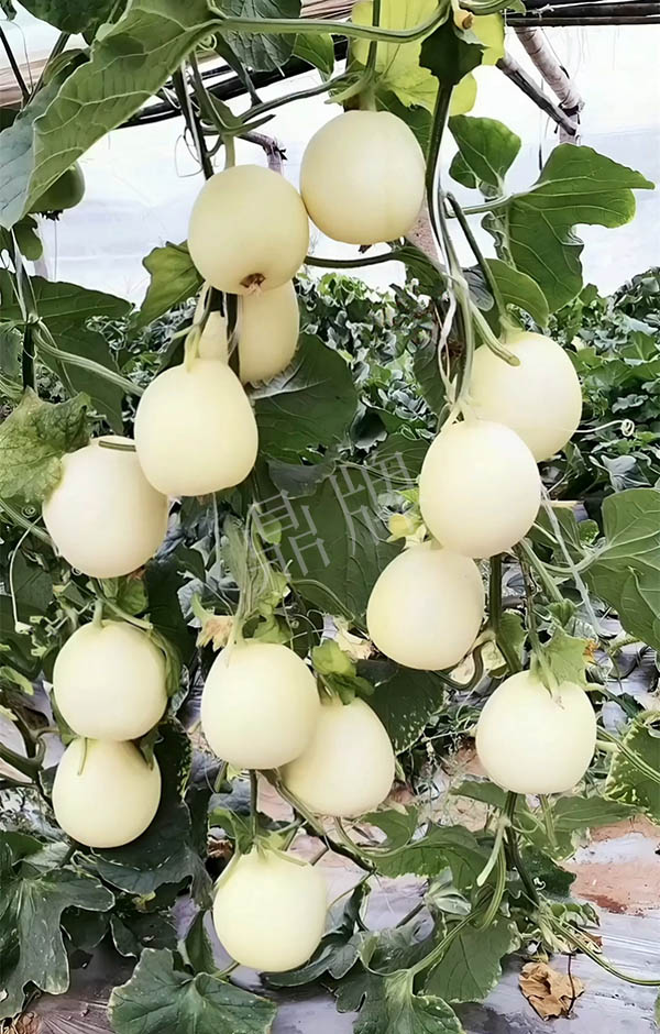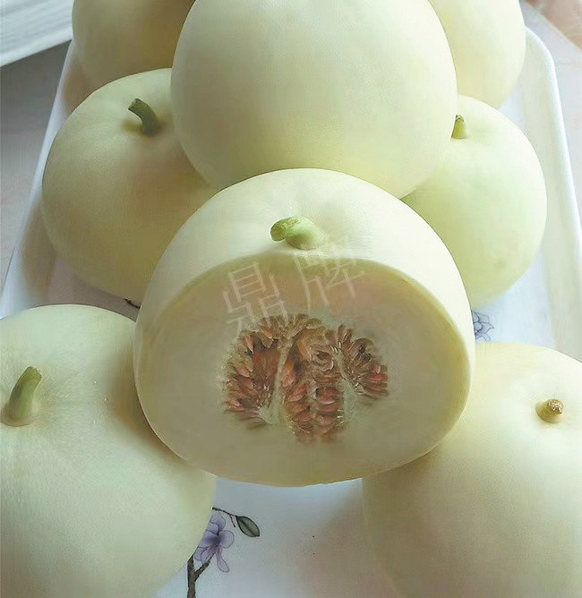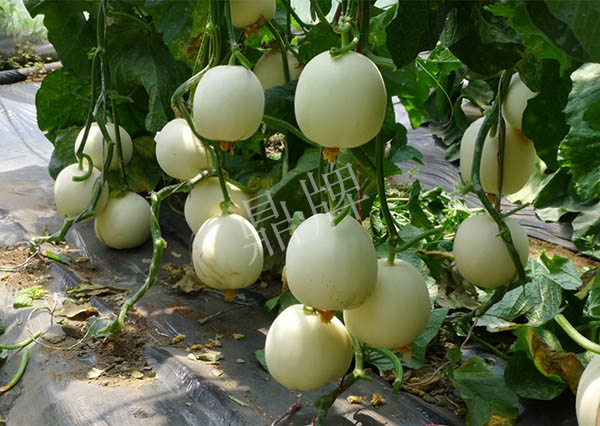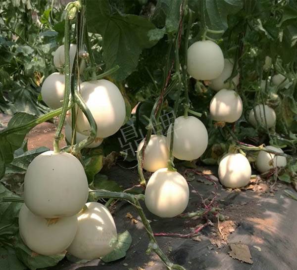 果實成熟后,甜度高達(dá)19度;果皮、果肉潤白,有一種天然質(zhì)感,看到就讓人喜歡;果肉厚達(dá)3厘米,這是薄皮甜瓜中難以見到的品種,連皮吃時能聽到“咔嚓”之聲,脆爽無比;坐果早而多,單果重650克左右;多雨天氣不易裂瓜,棚室、露地都能獲得豐產(chǎn)。