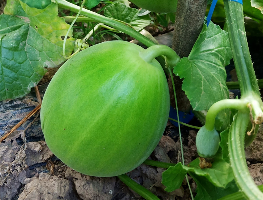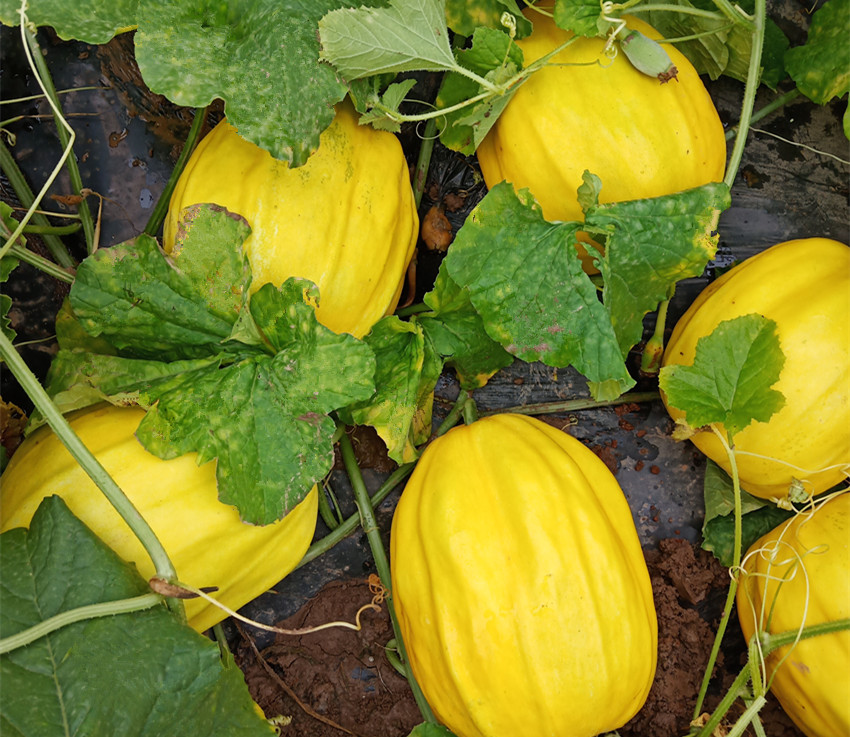 果大1.5公斤,以常規(guī)品種“丑八怪”為母本雜交而成,產(chǎn)量、品質(zhì)都有提高。皮韌肉脆,甜度高達18.5度。爬地1~2袋/畝、吊蔓5袋/畝。