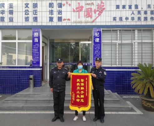下圖為趙中根家屬向民警和徐隊(duì)長(zhǎng)送錦旗: