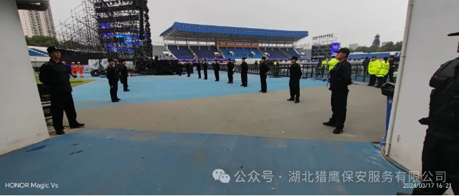 2024年3月17日,“夢(mèng)之藍(lán)M6+群星演唱會(huì)”在襄陽體育場激情開唱。湖北獵鷹保安服務(wù)有限公司在市公安局的領(lǐng)導(dǎo)下,共計(jì)組織800余名..安保員參加安保任務(wù),傾力守護(hù)現(xiàn)場秩序,圓滿完成此次演唱會(huì)的安保任務(wù)