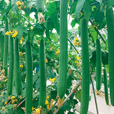 三倍體硬果絲瓜,可增產(chǎn)1倍。特早熟,藤蔓節(jié)間長只有一般絲瓜的1/3,所以成就了“大棚之愛”。已申請國家新品種保護(hù)。